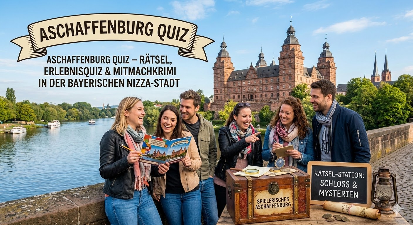 Aschaffenburg bietet weit mehr als nur Geschichte. Ob eine Schifffahrt auf dem Main, Shopping in der City-Galerie oder ein entspannter Abend in den Kneipen der Sandgasse – die Stadt am Untermain überrascht immer wieder neu. Dieses Aschaffenburg Quiz ist der ideale Begleiter für euren nächsten Besuch in der Perle am Main. Packt eure Freunde ein, nutzt diesen Mitmachkrimi als Guide und entdeckt die Geheimnisse der Welterbe-nahen Residenzstadt auf eigene Faust!