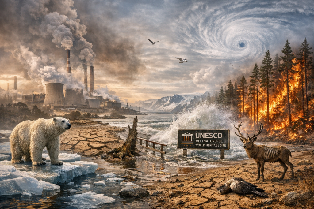 Antwort: Rund 90 Prozent. Erklärung: Der Bericht betont, dass fast alle UNESCO‑Gebiete inzwischen unter starkem Druck stehen – durch Luftverschmutzung, intensive Landnutzung, Tourismus oder industrielle Einflüsse. Die Zahl zeigt, dass Umweltstress kein Randphänomen mehr ist, sondern der globale Normalzustand.